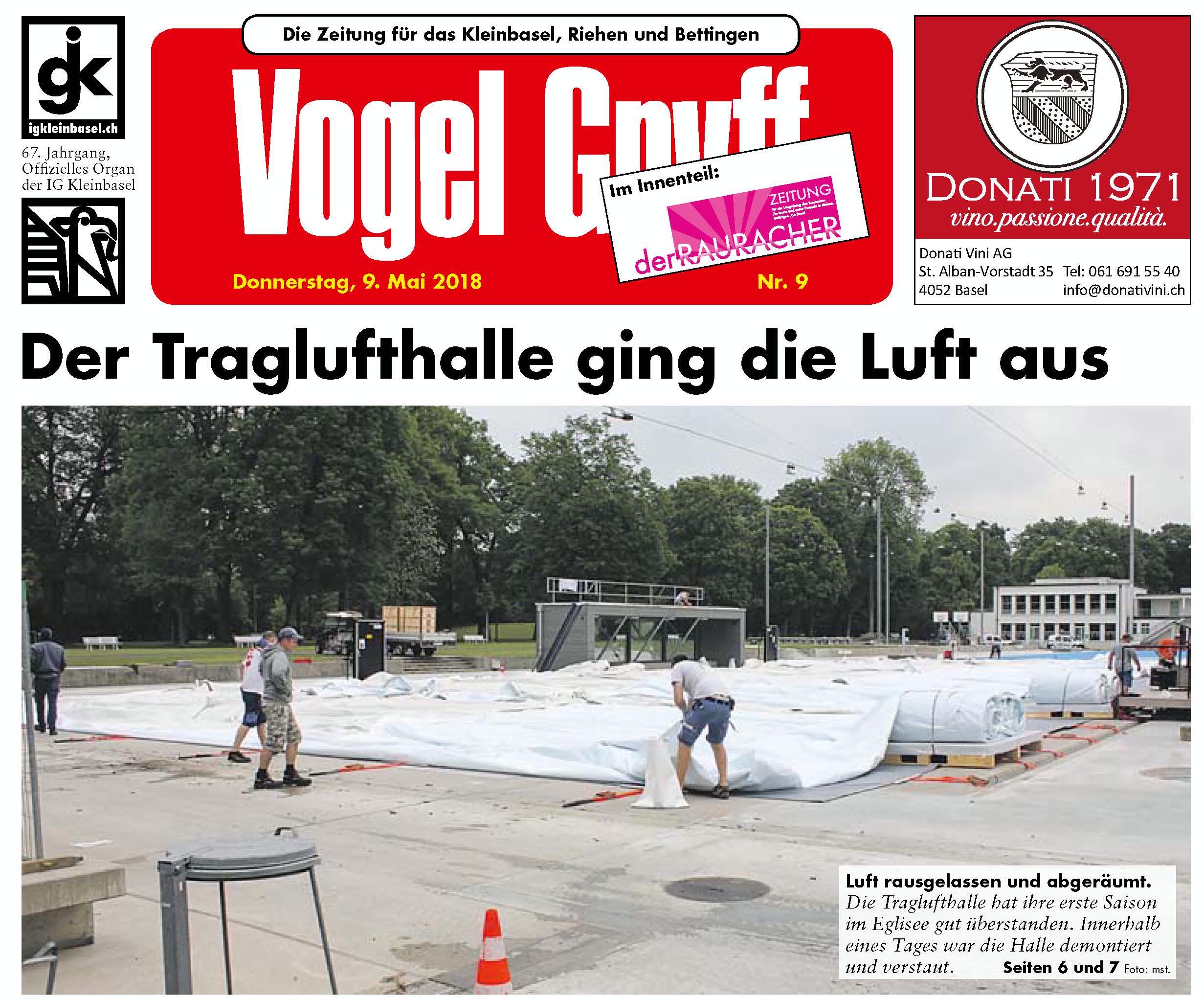 09. Mai 2018Im Ballondach über dem Schwimmbad im Eglisee ist zwar die Luft raus, aber die Halle und somit auch der SVB, hat die Probe bestanden.