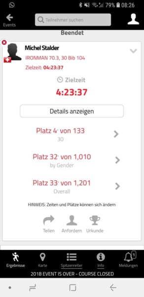Am Sonntag stand auf Rügen ein weiterer Ironman 70.3 auf dem Programm. Michel Stalder verpasste nur knapp das Podest und wurde hervorragender Vierter.