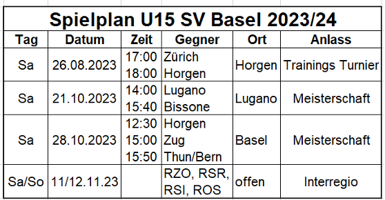 Hier alle bekannten Termine für die U15