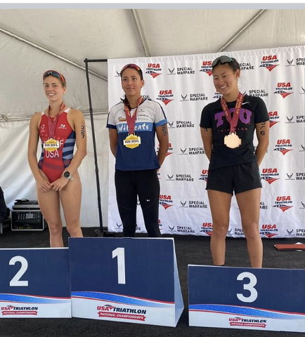 Während Alexa in USA studiert lässt sie es sich nicht nehmen zu trainieren und an Triathlons zu starten. An den National Championships konnte sie so auch direkt zu GOLD aufs Podest starten. Well done Alexa